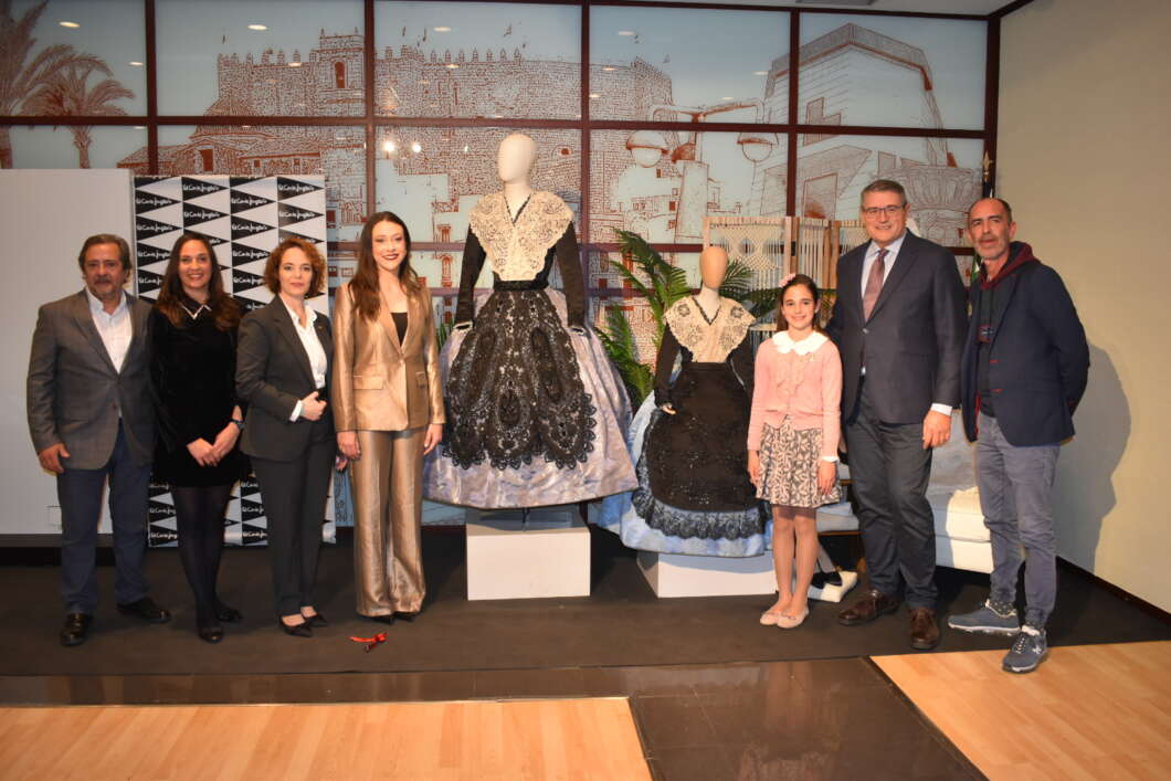En la imagen, Noelia Selma, concejala de Fiestas de Castellón y las Reinas de la Magdalena 2025, junto a Rafa Marí, de Telares Vives y Marí; Paco Fonseca, de Can Can en Pac; la indumentarista Amparo Pitarch, y Pau Pérez Rico, director de Comunicación de El Corte Inglés.