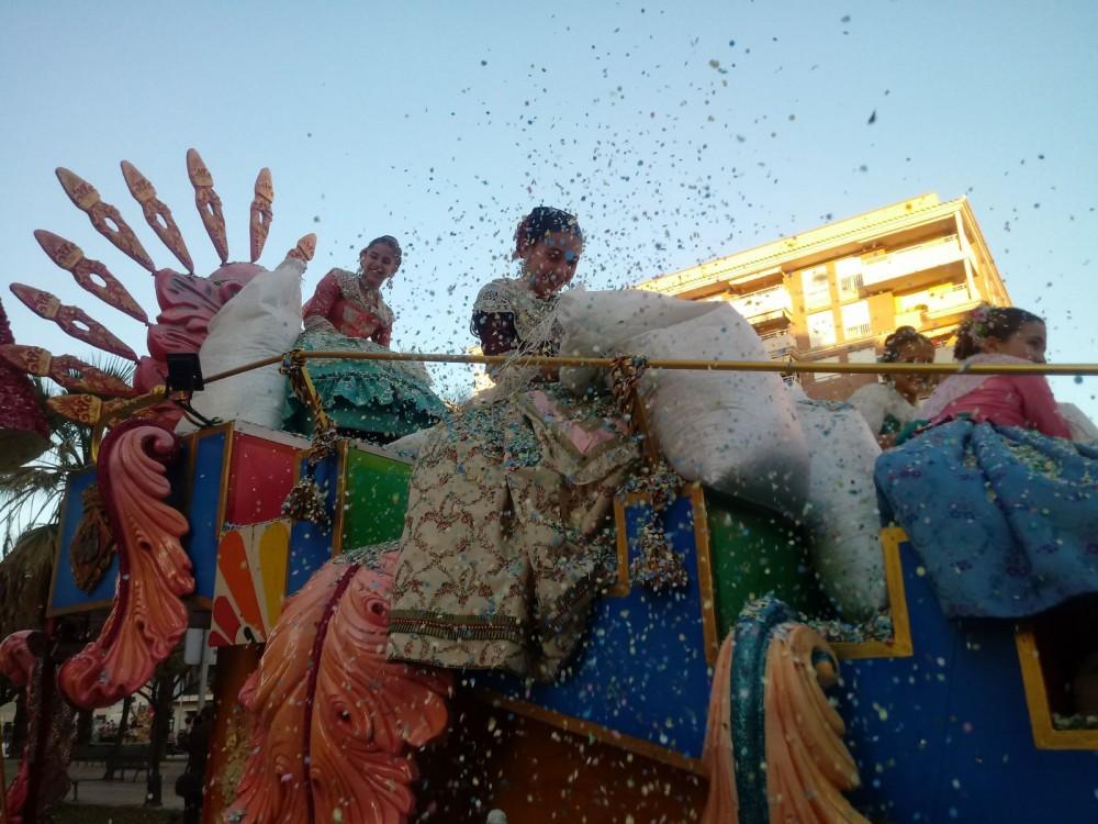 El bulevar Blasco Ibáñez de Castellón ha sido el escenario esta tarde la batalla de confeti más esperada de las fiestas de la Magdalena. El Coso Multicolor no ha defraudado a las centenares de personas, grandes y pequeñas, que se han dado cita en el nuevo recorrido de la cabalgata más colorida de la semana más importante para Castellón. En el desfile han participado 23 carrozas en las que estaban representadas los miembros de las 19 gaiatas, además de la de Na Violant d'Hongria, Ana Goterris con sus Dones de Companya, y las de la reinas de las fiestas, Lucía Burguete y Carla Bernat, con sus respectivas cortes de honor y por primera vez la Federacion de Collas. Todo amenizado con las bandas de música de Holanda, Eslovaquia y Suiza.