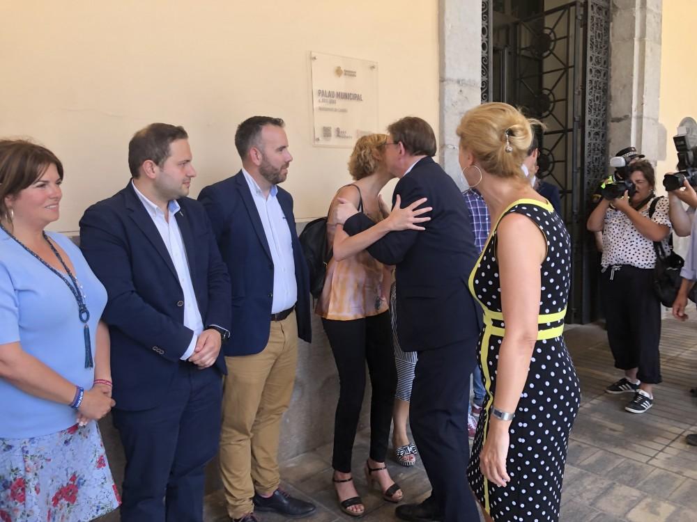 La Corporación casi en su totalidad ha saludado y estrechado la mano del presidente bajo los porches del edificio municipal. Tras posar para una foto ‘de familia’, Puig ha subido a la sala de Juntas de gobierno con los representantes del Tripartito, que ayer firmaban el Acuerdo de Fadrell y forman parte del gobierno tripartito de la ciudad.