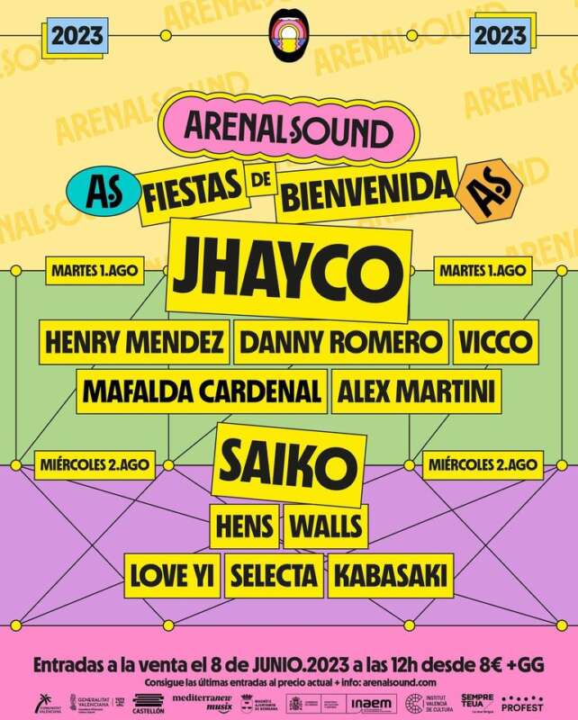 Arenal Sound, uno de los festivales más grandes de España, anuncia el lanzamiento del cartel de las Fiestas de Bienvenida, que se celebrarán el martes 1 de agosto y el miércoles 2 de agosto. Las entradas para estos eventos estarán a la venta a partir del próximo jueves 8 de agosto a las 12h, con precios desde 8€+gg. Es importante destacar que las entradas son muy limitadas, por lo que se recomienda adquirirlas lo antes posible.