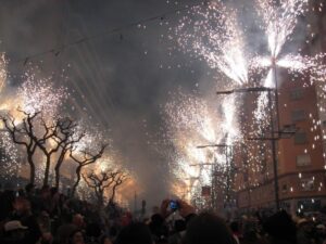 Comenzó entonces el redoble de tambores, los ‘dimonis’ se mezclaron con el público y los juegos de fuegos artificiales sembraron la calle entre la gente.