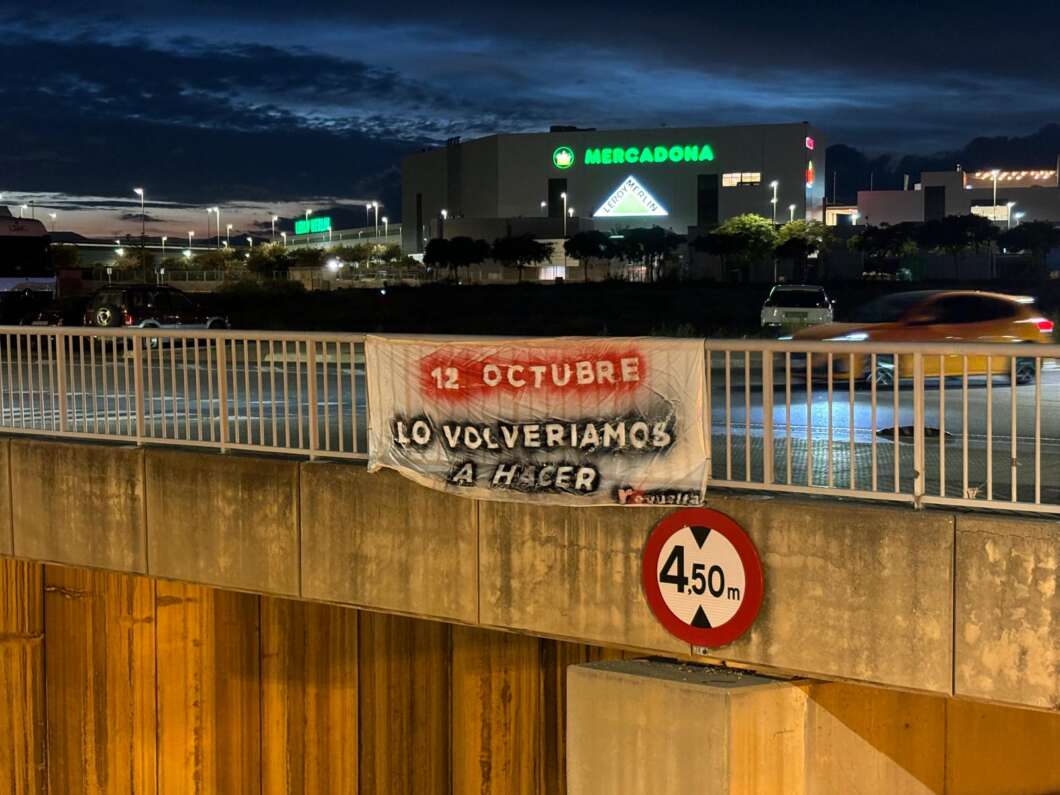 Uno de los pasos elevados de la zona norte de Castellón ha sorprendido por la pancarta que se ha colgado en el que dice textualmente: "12 de octubre. Lo volveríamos a hacer".