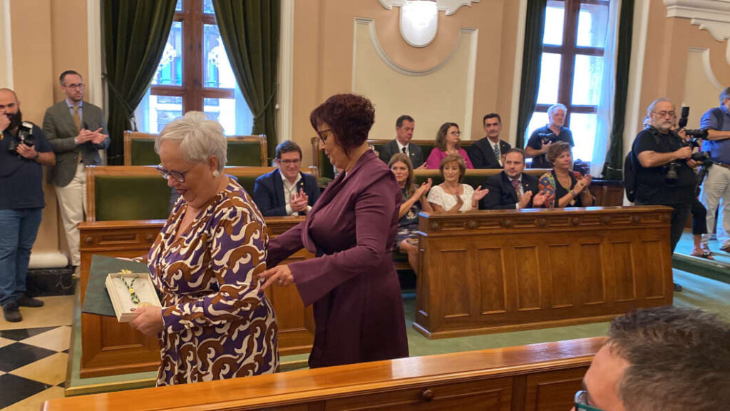 Medalla de la Ciudad a título póstumo para Pepín Marco, cuyo retrato estuvo presente