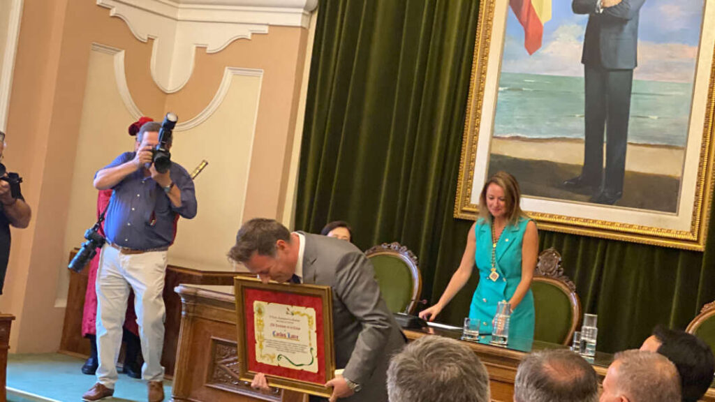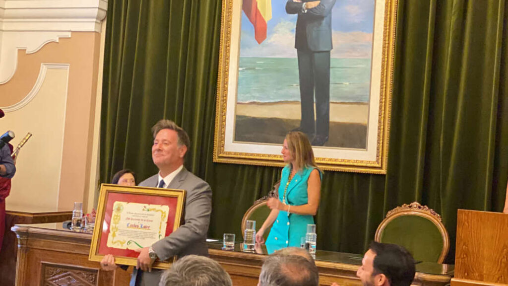 La alcaldesa de Castelló, Begoña Carrasco, rerró el acto protocolario de entrega de medallas: hoy, con la concesión de este título, el Ayuntamiento de Castellón rompe tópicos. El primero, que nadie es profeta en su tierra. Hoy, Carlos, sabes que los castellonenses te admiran y te respetan y por eso te distinguen con el mayor de los títulos y honores: la de ser su hijo predilecto. Y el segundo tópico es que los premios siempre se conceden cuando el protagonista ya no puede recogerlos y eso nos parece injusto. Llevas años siendo un referente en el mundo del espectáculo, por eso hoy ya eres un ilustre de Castellón, por derecho propio, por trayectoria, por capacidad, por méritos”.