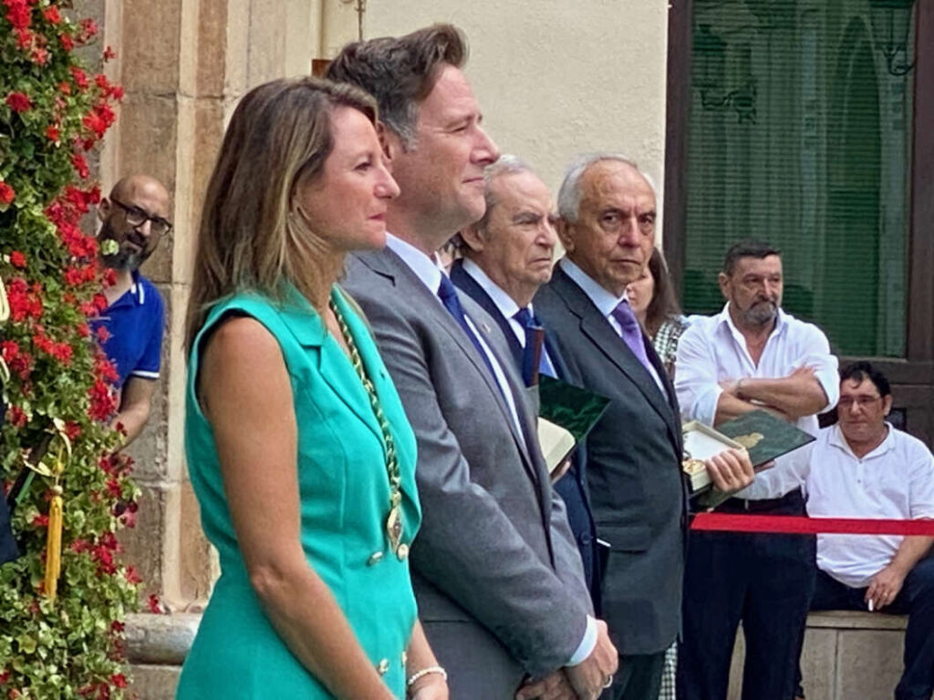 En una plaza tan repleta de público, se sucedieron las felicitaciones tanto a Carlos Latre como a los distinguidos con la medalla de la ciudad.