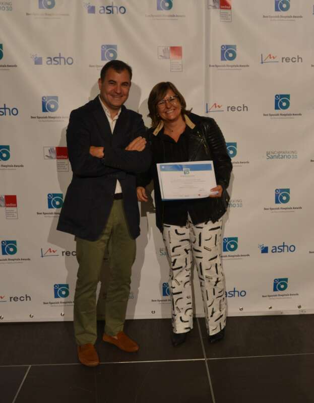 El Hospital Vithas Castellón ha resultado finalista de procesos quirúrgicos y han recogido el premio, Amparo Marzal, gerente directora de Vithas Castellón y el Dr. Jesús Merino, director médico de Vithas Castellón.