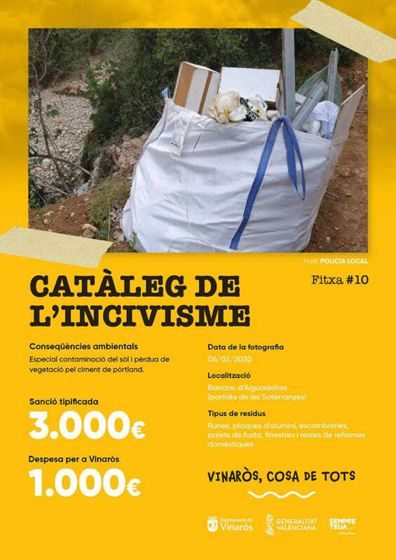 Asimismo, los vecinos también disponen de la aplicación para teléfonos móviles Vinaròs Incidencias para denunciar cualquier vertido ilegal. De una forma sencilla se puede realizar una fotografía con la correspondiente ubicación para que los técnicos municipales gestionen la denuncia para la posterior retirada de los residuos.