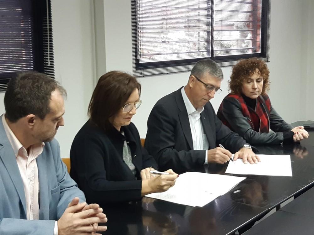 El conseller de Economía Sostenible, Sectores Productivos, Comercio y Trabajo, Rafa Climent, y la alcaldesa de Benicarló, Rosario Miralles, han firmado un acuerdo de colaboración por el cual el Ivace cede al municipio, de manera gratuita, el uso del edificio de la antigua sede de la Unidad Técnica de Aidima para la creación de un vivero de empresas y un Centro de Dinamización Económica y Social, como espacio multidisciplinario.