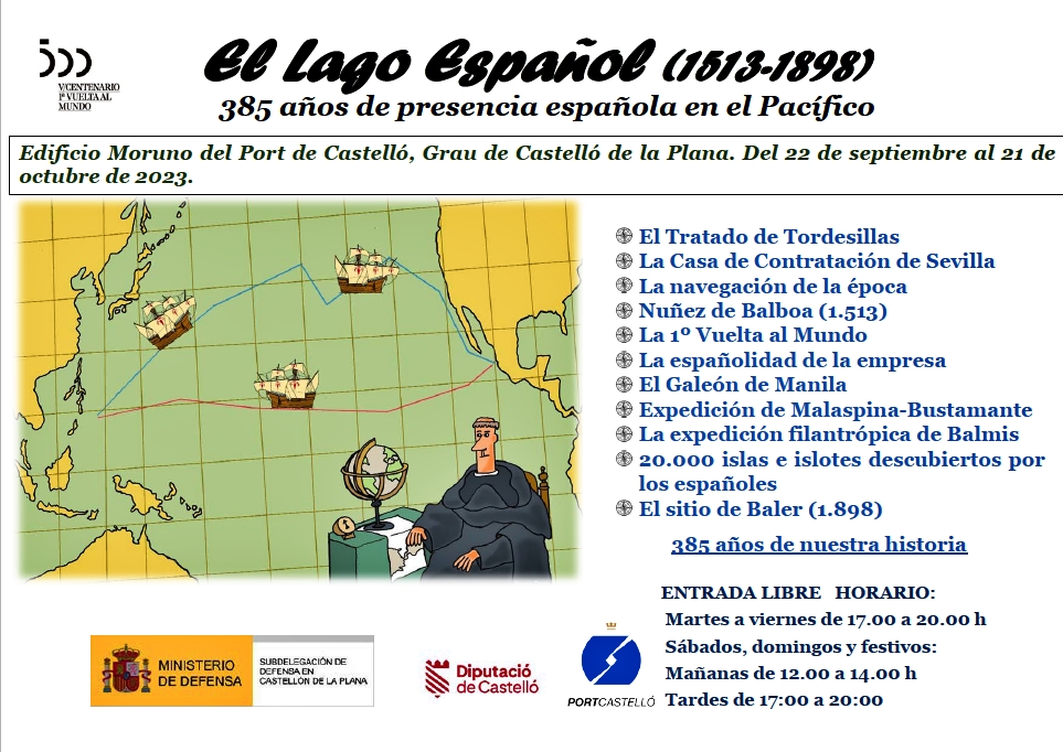 El Océano Pacífico, que ocupa un tercio del planeta, recibió durante cuatro siglos el nombre de ‘El Lago español’. Esto fue así, porque España fue el primer país en descubrir aquel ‘Mar del Sur’ en la Primera vuelta al mundo por mar. También fue el primer país en organizar una línea regular de navegación y transporte de mercancías y pasajeros que lo navegaba con el Galeón Manila. La Delegación de Defensa en Castellón ofrecerá una completa exposición en el edificio Moruno que se inaugurará el 22 de septiembre.