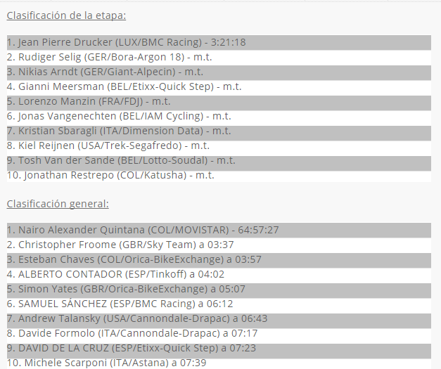 La provincia de Castellón empieza a vibrar con la Vuelta a España, que este año cumple su 71 edición. Este lunes la decimosexta etapa recorrió gran parte de las localidades de Els Ports y del Alt i Baix Maestrat. La meta estaba instalada en Peñiscola y el ganador fue el luxemburgués Jempy Drucker (BMC) superando al sprint a los alemanes Rüdiger Selig (Bora-Argon 18) y Nikias Arndt (Giant-Alpecin). Nairo Quintana (Movistar) ha mantenido intacto su liderato en la general antes del último día de descanso en una de las pocas etapas sin sobresaltos de la carrera española.