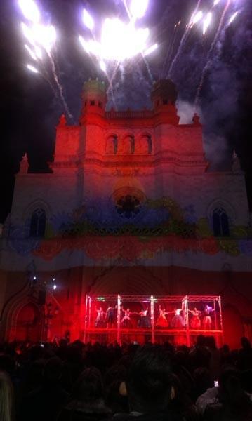 La concatedral se iluminó de verde, de vida, y la Lledonera nacida de la tierra que la venera, tomó parte también el espectáculo de la Magdalena del 2015. Varios cuadros de baile se movieron al son de la música y el folklore de Castellón, delante de la Concatedral, mientras los fuegos artificiales iluminaban el cielo desde la parte trasera de la Concatedral.