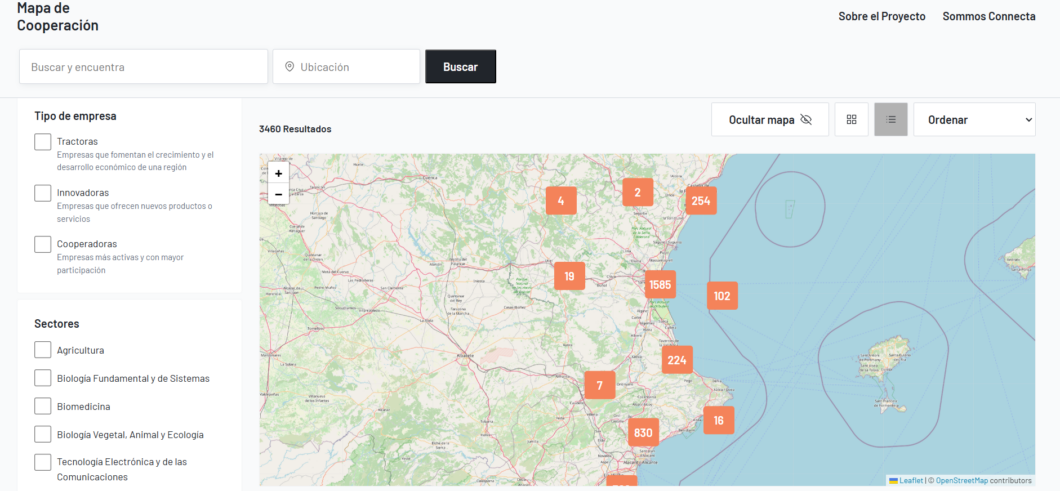 El Mapa de Cooperación e Innovación es una iniciativa de los CEEIs de la Comunitat Valenciana, promovida y financiada por la Generalitat, a través del Instituto Valenciano de Competitividad e Innovación (IVACE+i), enmarcado en el programa SOMMOS_connecta. Actualmente, en el conjunto de la Comunitat Valenciana, hay más de 3.000 empresas innovadoras, tractoras y cooperadoras registradas en este mapa.