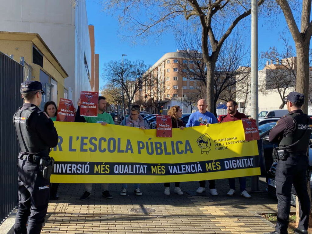 La llegada del ministro y del conseller ha sido recibida por seis manifestantes que gritaban consignas contra José Antonio Rovira, al que han medido su dimisión, y contra el presidente de la Generalitat, Carlos Mazón.