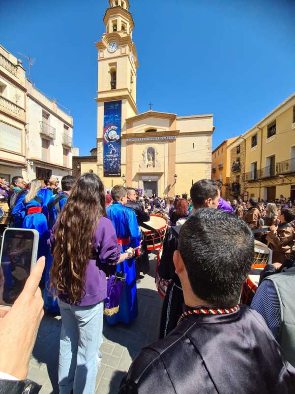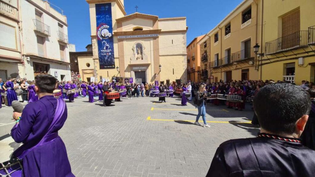 Una vez todos los participantes han llegado a frente a la Iglesia de Nuestra Señora de la Asunción ha sido cuando el párroco del lugar quien ha acogido a todos los tamborileros pronunciando unas palabras a modo de reflexión, recordando el significado del Viernes Santo. Posteriormente, el propio sacerdote ha vuelto a dar comienzo al estruendo sonoro que finaliza dejando patente el silencio solo roto por la ovación del público allí presente.