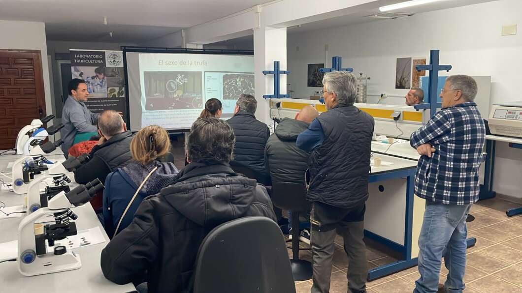 La Villa de El Toro ha iniciado este jueves tarde la programación de la XXI Feria de la Trufa Negra. Lo ha hecho con un taller que, desarrollado en el laboratorio de la localidad, ha analizado la microscopia aplicada al cultivo de este hongo.