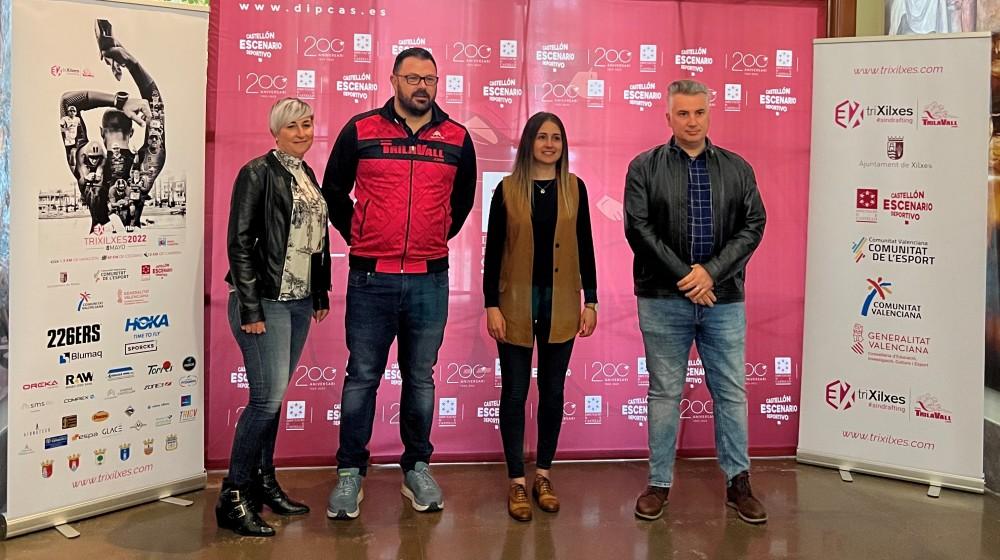 El alcalde de Xilxes, José Martínez, y la concejala de deportes, Mayte Pinés, han presentado junto a la diputada de Deportes, Tania Baños, y el director de la carrera, Vicente Marqués, en el Palacio de la Diputación Provincial la séptima edición de la Trixilxes, una prueba de triatlón sin ‘drafting’ de gran prestigio nacional organizada por TriLaVall que en esta nueva entrega ha batido su récord de participación, ya que más de 550 participantes se darán cita el próximo domingo 8 de mayo.