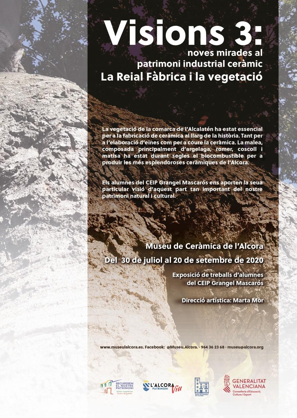 La segona exposició és “Visions 3: la Reial Fàbrica i la vegetació”. Com indica el títol, és la tercera edició d'un taller d'iniciació a la fotografia, també dirigit per Marta Mor, en la qual han participat els alumnes de 5é i 6é de Primària del CEIP Grangel Mascarós de l'Alcora. Si en les dues primeres edicions les fotografies van tindre com objectiu el patrimoni industrial local, i especialment en la Real Fàbrica, en aquesta ocasió s'han centrat en les espècies vegetals relacionades amb el procés ceràmic: plantes, arbustos i arbres que van servir com a combustible en els forns moruns (la “malea”) o per a la fabricació d'algunes eines tradicionals.