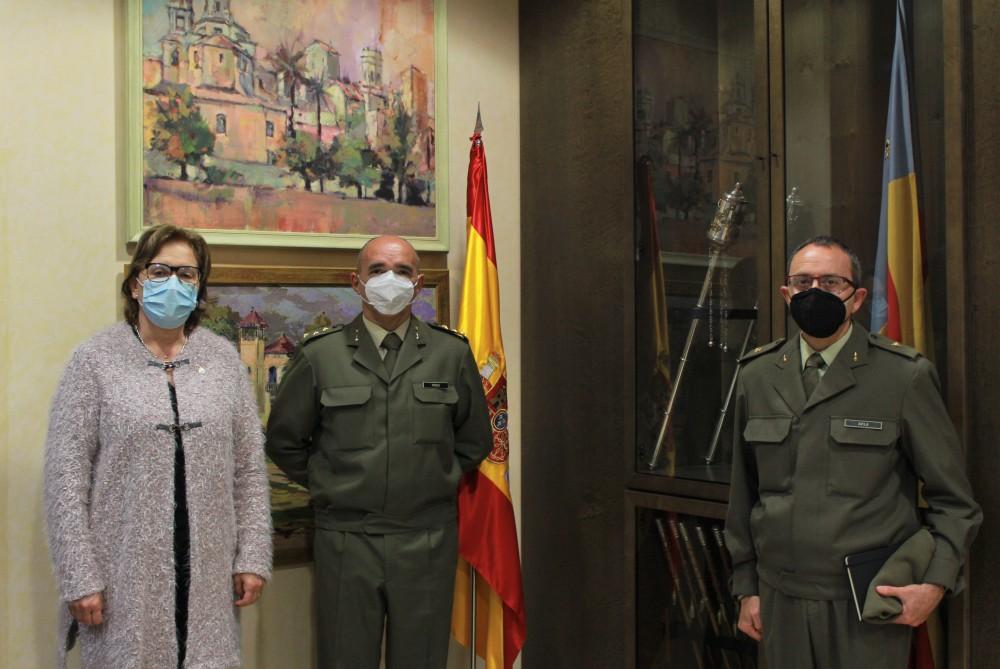 En la visita institucional, Maria Josep Safont ha felicitat el coronel i li ha agraït la permanent col·laboració i el treball de l'Exèrcit en el municipi, i ha destacat “la cooperació fonamental durant aquest últim any en la lluita contra la pandèmia, ja que durant l'emergència sanitària es va desplegar personal i mitjans de Defensa per a col·laborar-ne en la resolució i minimitzar-ne les conseqüències”, i en concret s'ha referit a la labor de l’UME i la seua col·laboració en la desinfecció d'instal·lacions i de diverses zones de la localitat.