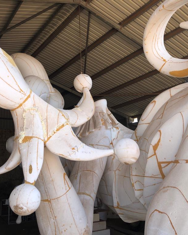 Una portalada que se esta construyendo en el taller del artista fallero Ximo Foix