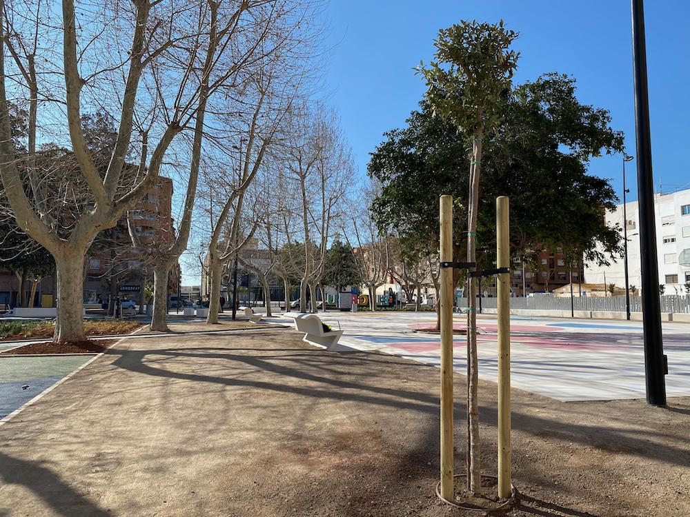 Con un presupuesto de 1.476.240 euros cofinanciado por el Ayuntamiento de Castelló y los Fondos Europeos FEDER, la actuación pone a disposición de la ciudadanía una gran plaza de 11.300 metros cuadrados más diáfana, con zonas deportivas con elementos biosaludables y de juegos infantiles, áreas de trabajo al aire libre con estructuras de sombra, más arbolado e iluminación led, mobiliario renovado y elementos innovadores como una fuente singular central de efecto géiser.