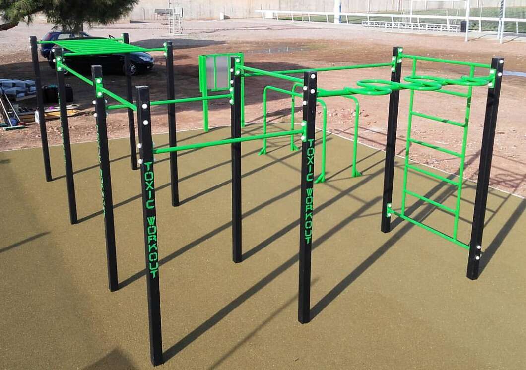 En muchos de estos espacios se pueden encontrar barras situadas a diferentes alturas y tamaños, triples barras paralelas, barras paralelas mini, espalderas, bancos de abdominales, puentes de gimnasia olímpica, pole dance o estaciones con anillas, aunque no todos disponen de las mismas estructuras.