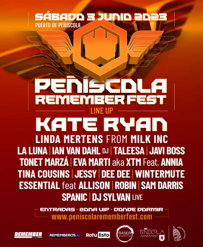 La segunda edición del Peñíscola Remember Fest llegará a la Ciudad en el Mar en menos de un mes. El mayor festival de música remember de los 90 y 2000 de la provincia de Castellón apuesta por Kate Ryan como cabeza de cartel. La icónica cantante belga ha cosechado en su extensa trayectoria grandes éxitos como "Desenchantee", "Ella Elle l'A" o "Voyage Voyage" que han revolucionado el panorama de la música dance en todo el mundo. Ryan interpretará sobre el escenario del PRF sus temas más conocidos para dar el pistoletazo de salida a la temporada estival.