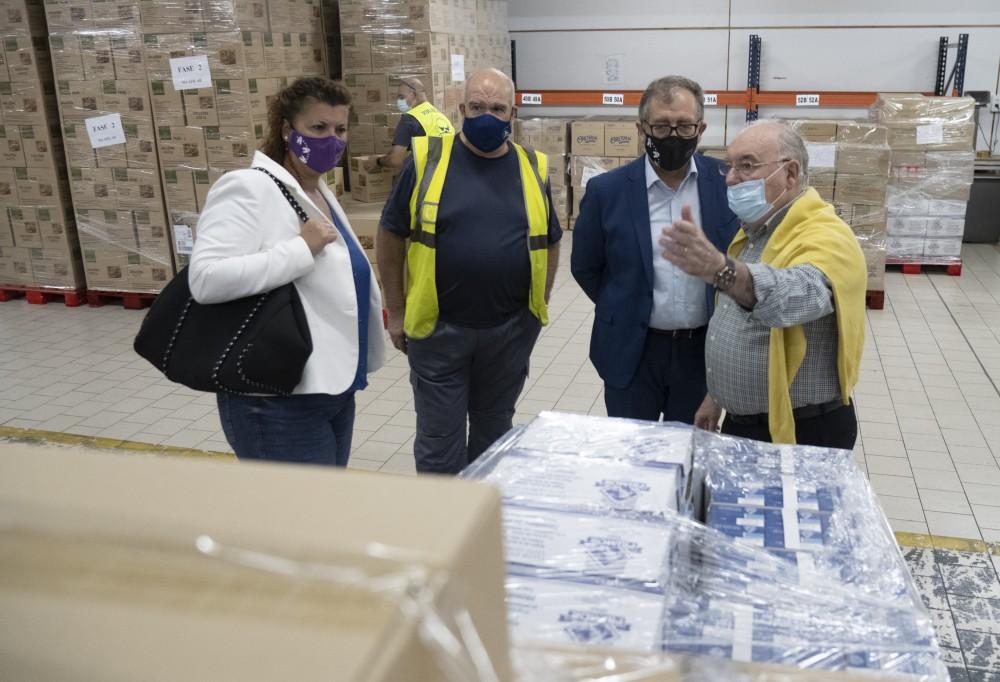 El presidente de la Diputación de Castellón, José Martí, y la vicepresidenta y responsable del área de Bienestar Social, Patricia Puerta, han visitado la nave del Banco de Alimentos de Castellón para conocer detalladamente el programa destinado a la ayuda alimentaria para las personas más desfavorecidas en 2021. En el encuentro los ha acompañado el presidente del Banco de Alimentos de Castellón, Santiago Miralles.