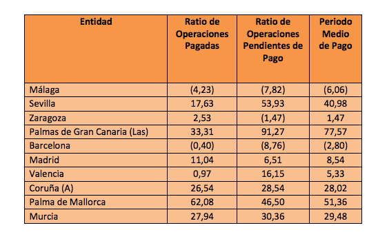 De las principales ciudades, tres presentan más de 30 días en mayo. Es de destacar que, salvo una, todas ellas disminuyen su PMP respecto al mes anterior.