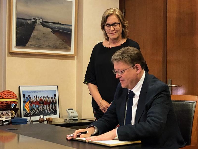 L'alcaldessa de Borriana, Mª José Safont s'ha sentit profundament emocionada quan Puig ha llegit en veu alta quant havia escrit en el llibre oficial. I en correspondència, la primera edil de Borriana ha regalat al president un llibre amb la història de la ciutat