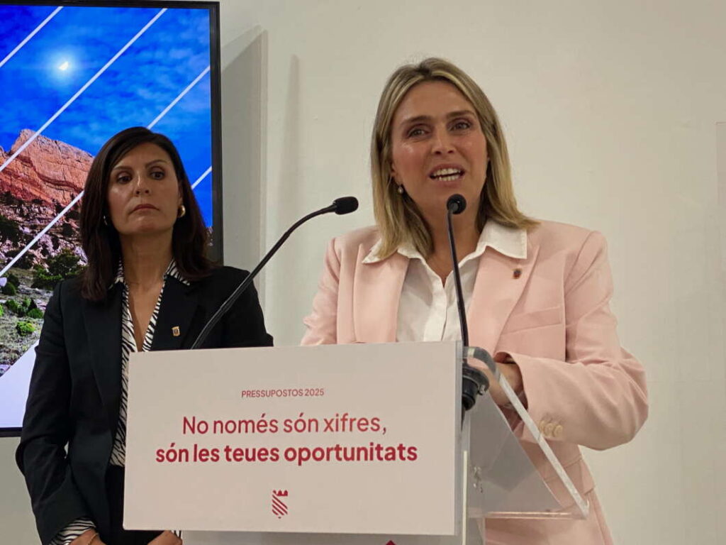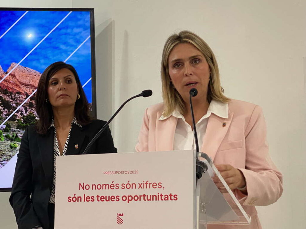 La presidenta de la Diputació Provincial de Castelló, Marta Barrachina, al costat de la vicepresidenta i responsable de l'àrea Econòmica, María Ángeles Pallarés, ha presentat aquest dimarts el pressupost 2025 “per a continuar generant oportunitats i que ascendeix a 217,2 milions d'euros”.