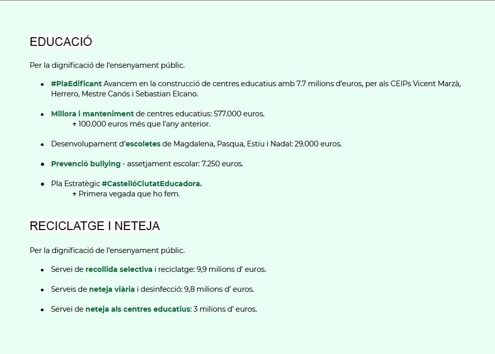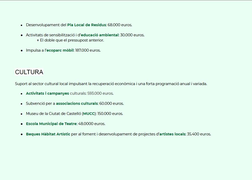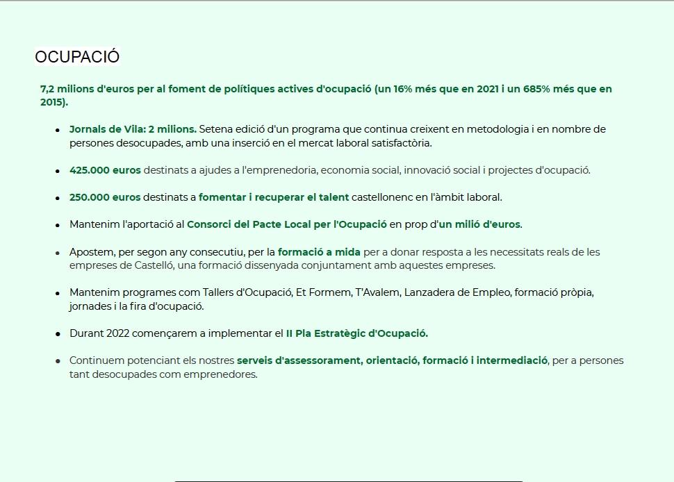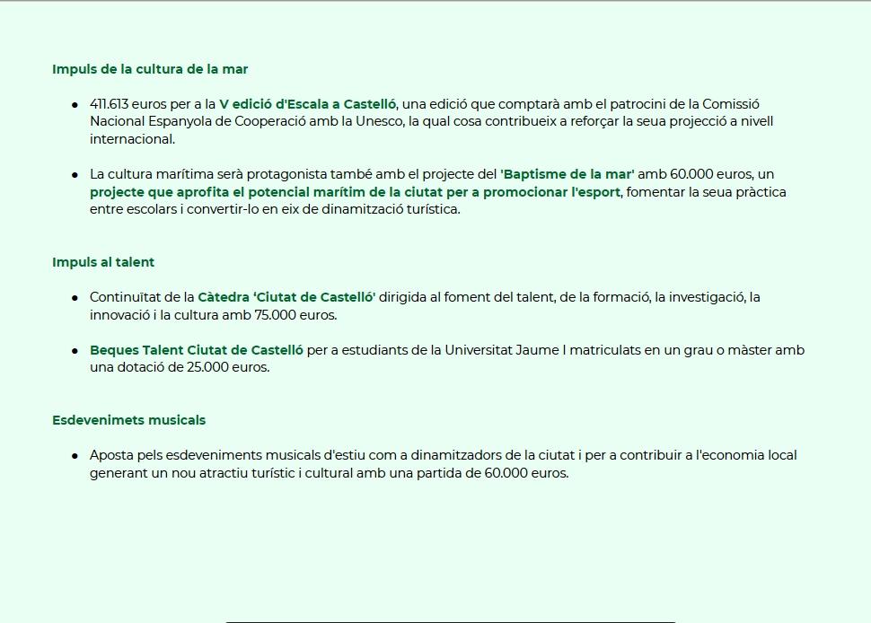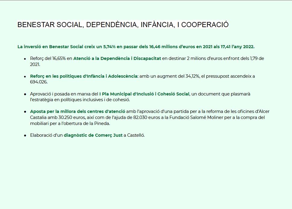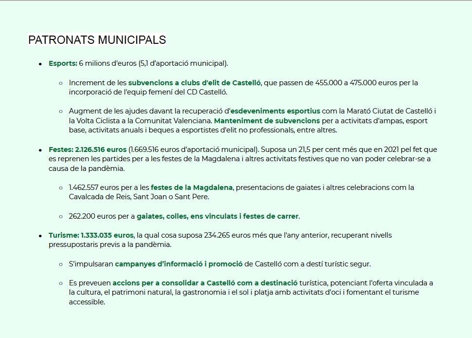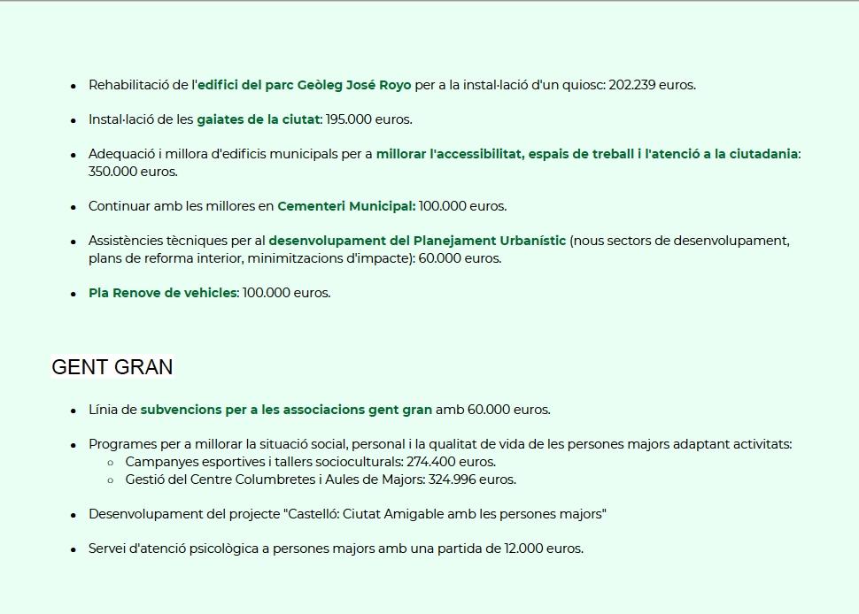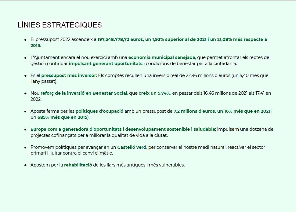 La alcaldesa ha mencionado también, que “son presupuestos que promueven un avance en “un Castellón verde para conservar el medio ambiente rural, reactivar el sector primario y lucha contra el cambio climático”, y ha añadido que apuestan por la rehabilitación de vivienda más antiguas de personas más vulnerables.”