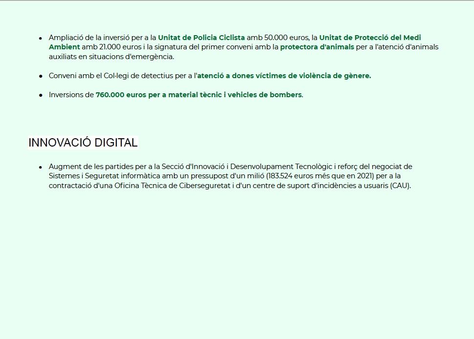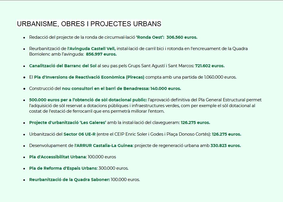 Garcia también ha puesto en valor el Pla Edificant, que supondrá “una inversión de 7,7 millones de euros para la construcción de escuelas, que dignificará la enseñanza pública y creará puestos de trabajo en la ciudad”.