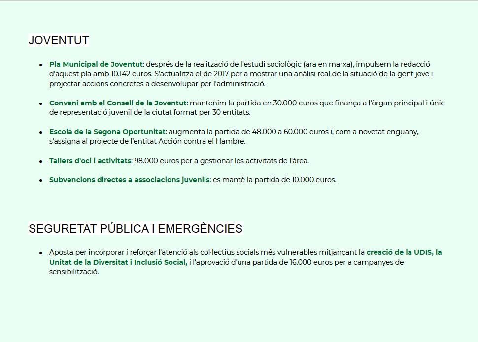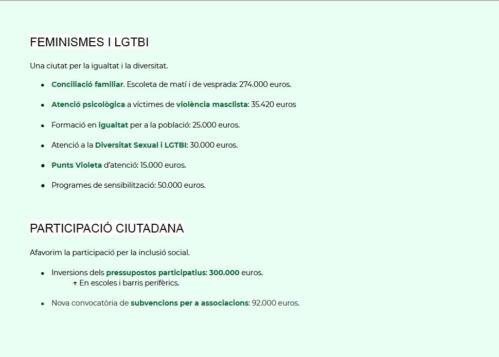 El segundo teniente de Alcaldía ha incidido además en la apuesta por la cultura “con un plan ambicioso y una programación envidiable, con ayudas y subvenciones, para impulsar los artistas locales y el sector”. En cuanto a las políticas de Igualdad, Garcia ha resaltado que “ante los últimos episodios de ofensiva de la ultraderecha resulta más necesario que nunca estas políticas por la igualdad, la diversidad, la tolerancia y la libertad en nuestra ciudad”.