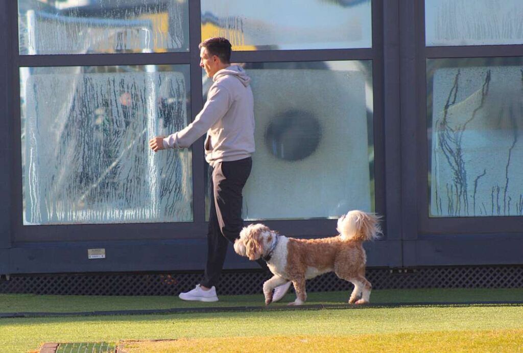 La sesión de entrenamiento ha estado presidida por el máximo accionista del club castellonense, el denominado custodio de la entidad, Bob Voulgaris, acompañado por su inseparable perro, Óscar.