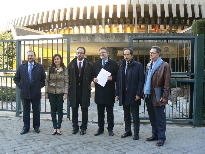 El portavoz socialista, Antonio Hernando, junto a los secretarios adjuntos del Grupo Socialista, Francesc Vallès –diputado por Tarragona-, José Luis Ábalos –diputado por Valencia-, Carmen Montón –diputada por Valencia- y el secretario de Reformas Democráticas del PSOE y secretario general del PSPV-PSOE, Ximo Puig –diputado por Castellón- han presentado hoy un recurso ante el Tribunal Constitucional, contra el Real Decreto-Ley 13/2014 de medidas urgentes en relación con el sistema gasista y la titularidad de centrales nucleares, por el que se cierra temporalmente el almacén de gas natural Castor -situado frente a las costas de Castellón y Tarragona- y se fija una indemnización de 1.350,7 millones de euros para la empresa concesionaria.