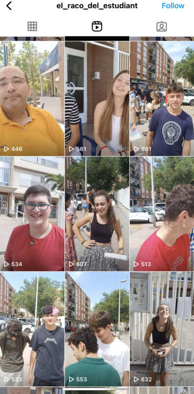 El Racó de l'estudiant va començar el seu camí a l'Institut Tàrrega de Vila-real fa un any. Ara, estan explotant al màxim la plataforma Instagram amb vídeos en què es tracten diferents temes relacionats amb l'estudi. Compten ja amb un total de 445 followers al seu perfil.