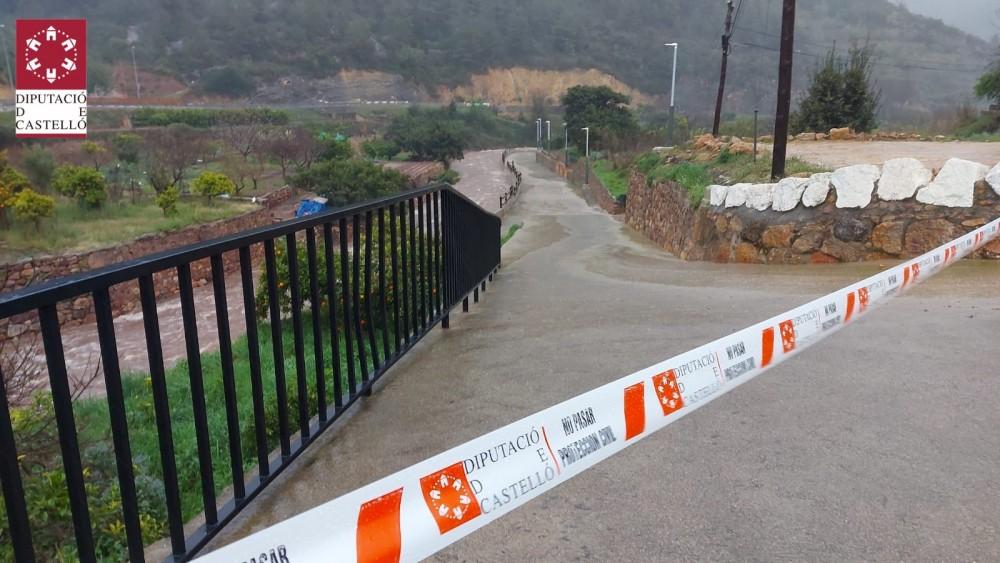 El río Anna se ha desbordado esta noche a su paso por la localidad de Burriana y ya ha sobrepasado uno de sus puentes, en la parte norte de la población. El río Belcaire también ha sobrepasado su cauce en varias zonas y ha sido necesario cerrar caminos y poner protección.  La lluvia no ha dado tregua en Castellón a lo largo del lunes, donde ha dejado sobre 370 litros por metros cuadrado en Eslida, alcanzando el récord histórico de precipitacions en un día en la provincia ne Castellón. En Aín se han registrado, en 24 horas, 249 litros por metro cuadrado y en Alcudia de Veo 236 l/m2.