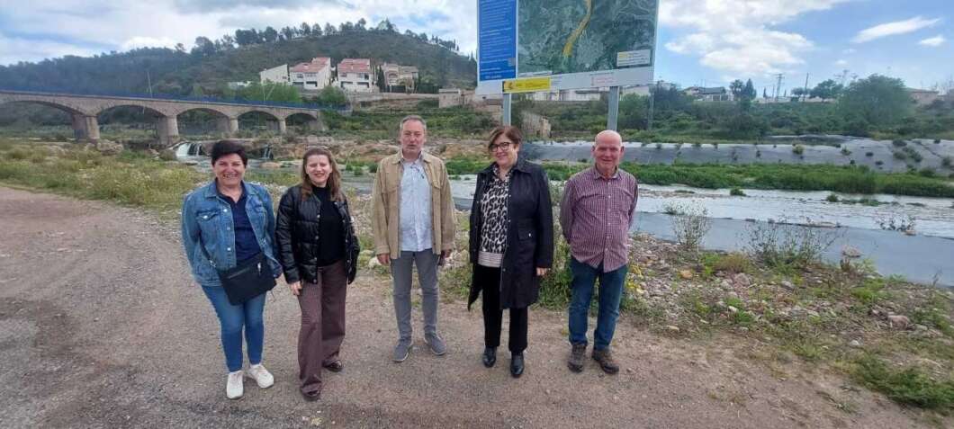 Después de la reunión de trabajo, que se realizó en el salón de Penos del Ayuntamiento, se desplazaron para ver las obras que la Confederación Hidrológica de Júcar está realizando en el rio Palancia el su paso por Sot de Ferrer. Obras que consisten en una primera fase de desbroce, extracción de rizoma e instalación de la cobertura, así como su posterior retirada una vez transcurridos dos veranos.