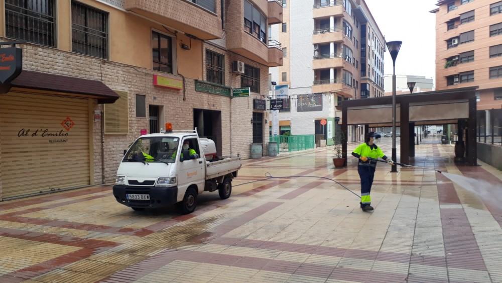 D'altra banda, l'empresa concessionària del servei de neteja viària també està fent treballs de reforç de la neteja de carrers,places i parcs. Atesa la situació actual d'emergència sanitària per la pandèmia de COVID-19, s'ha redefinit el contracte per a ampliar les rentades a pressió de la via pública, que ja han començat durant el dia de hui.