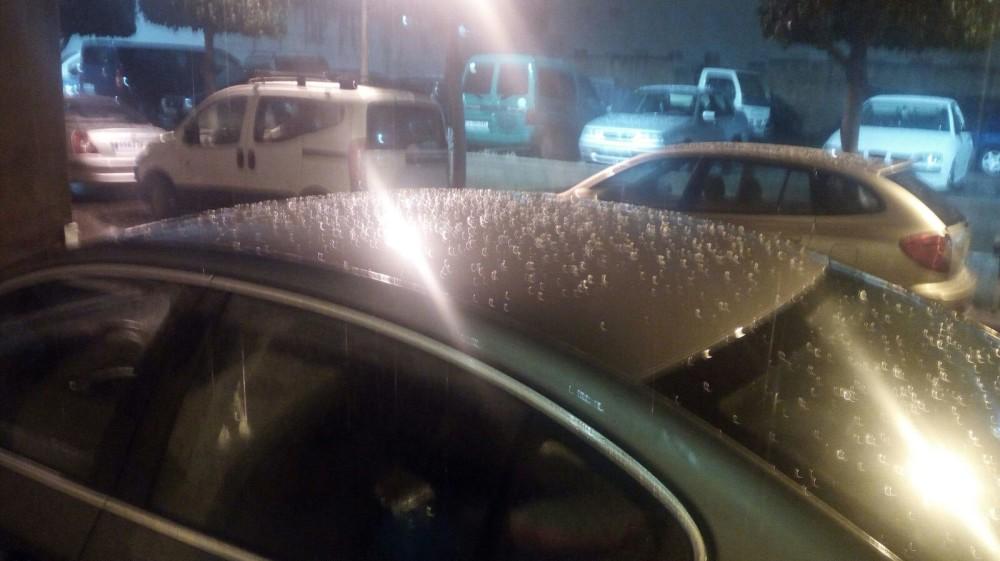 A media tarde de hoy, una gran tromba de agua y granizo bloqueaba durante más de media hora la localidad de Onda y pintaba de blanco los espacios urbanos y los alrededores.