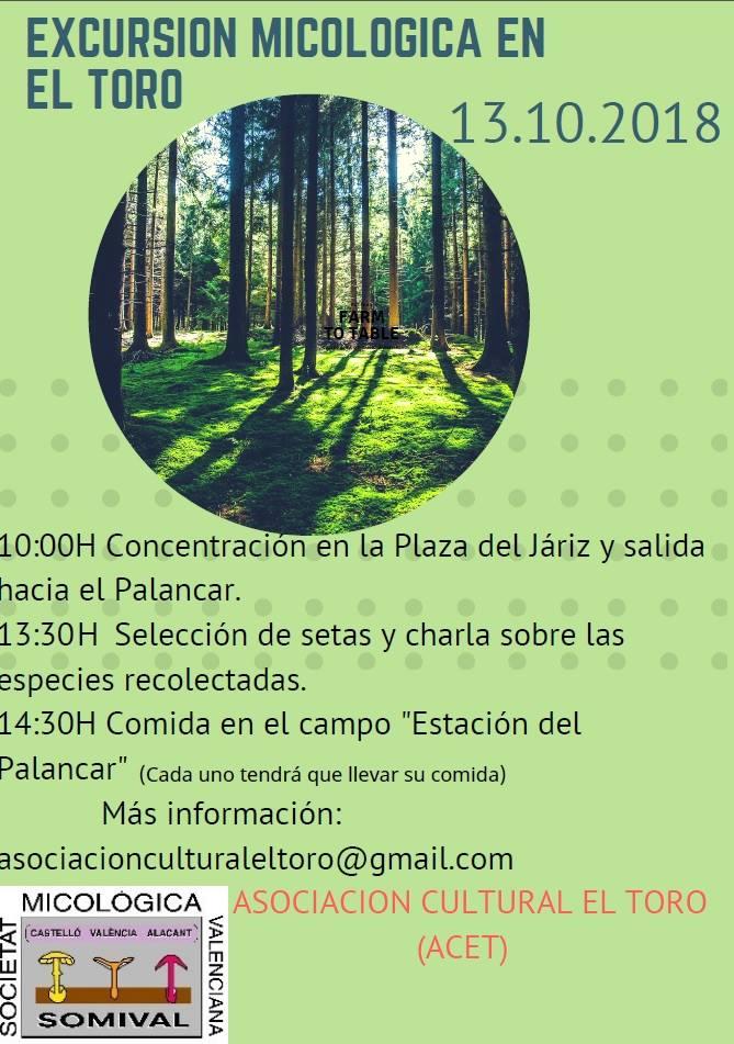 Desde la Asociación Cultural de El Toro han organizado una excursión micológica para el próximo 13 de octubre para todos los que quieran inscribirse de forma gratuita. El lugar de concentración será la plaza Rey Don Jaime, también conocida como plaza del Járiz.