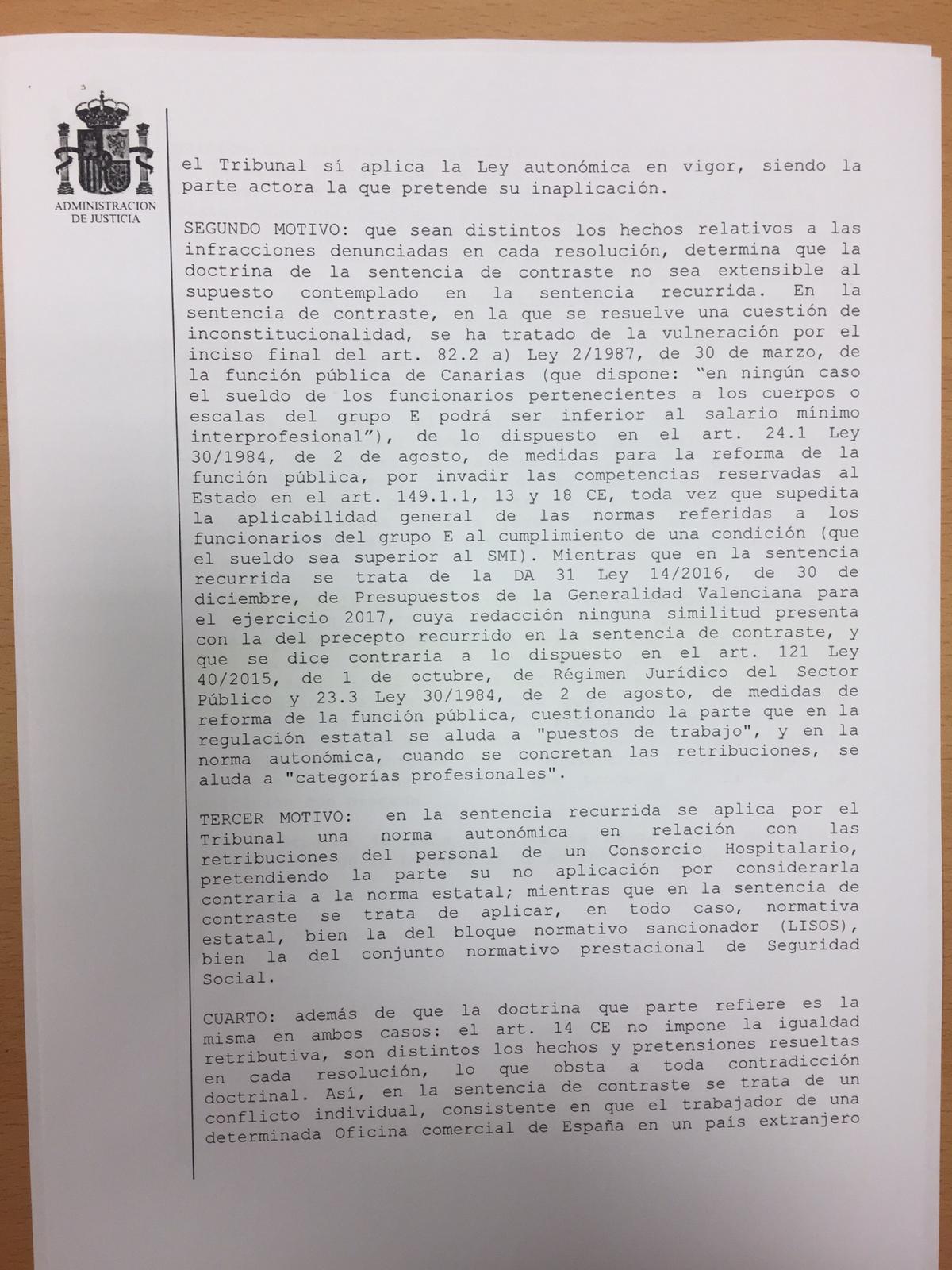 EL TSJCV ya desestimó el pasado mes de abril recurso interpuesto por CCOO, que solicitaba la declaración de nulidad de la equiparación de retribuciones. En su sentencia, el TSJCV estimó que “no hay base para declarar la ilegalidad de las medidas impugnadas”, ya que la ley ha previsto esta medida que “no se opone a ninguno de los preceptos de la Constitución”.