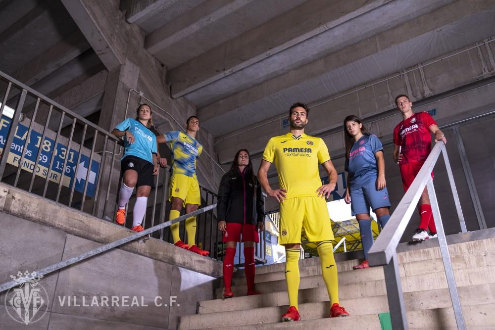 El Villarreal ha presentado hoy las nuevas equipaciones Joma de la temporada 2021-22 mediante una sesión fotográfica en la que han participado los futbolistas del primer equipo Vicente Iborra, Juan Foyth y Aïssa Mandi y las jugadoras del Villarreal Femenino Lara Mata, Bea Prades y Marta Querol en el Estadio de La Cerámica.