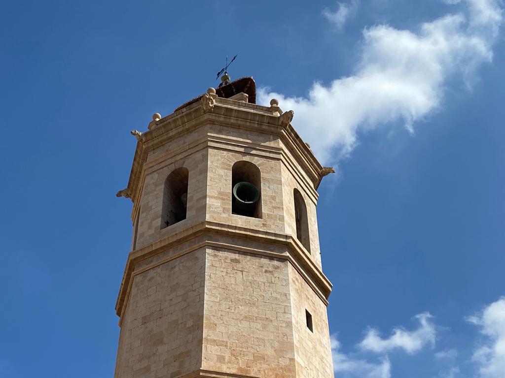 El volteo de campanas del Fadrí ha dado inicio al programa este mediodía, con un toque extraordinario de más de cinco minutos de duración durante el que han sonado las campanas Doloretes, Joaquina, Cristina, Jaume, Vicent, María y Ángel. Miembros de la corporación municipal han presenciado el volteo desde la plaza Mayor, en un acto que simboliza la recuperación de una cierta normalidad en un contexto todavía marcado por la covid y tras un 2020 en el que solo se pudo conmemorar el aniversario con el simbólico toque de la campana Ángel, la más emblemática de la ciudad.