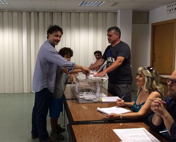 El portavoz de Compromís per Borriana y concejal de Cultura y Deportes en el Ayuntamiento de Borriana, Vicent Granel, ha ejercido su derecho al voto esta mañana en su colegio electoral de Borriana, acompañado por miembros del colectivo local de Compromís. Ha manifestado, tras depositar el voto, que espera “que muchos borrianenses vayan a votar con una sonrisa y con la esperanza que algo va a cambiar a partir de mañana”. Así mismo, ha indicado que “espera que los borrianenses se han partícipes del cambio político en España”.