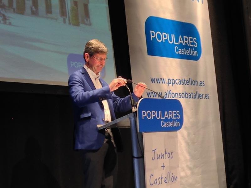 Bataller dio paso en el escenario a Javier Moliner, presidente del PP Provincial y actual presidente de la Diputación de Castellón, que aspira a repetir en este puesto, desde su número 3 en la lista del Ayuntamiento de Castellón.