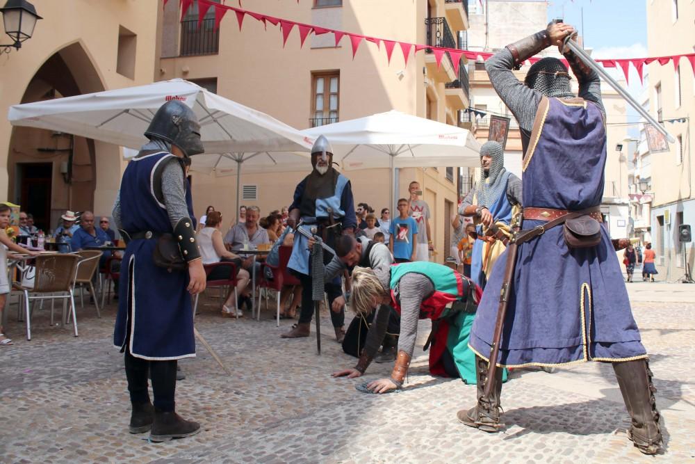 110818 feria medieval ayuntamiento onda segundo día 1Des que s'obrira, ahir divendres a la vesprada, amb el tradicional pregó, personatges com a cavallers, donzelles, artesans, músics o bufons s'han barrejat amb el públic que no ha volgut deixar passar l'oportunitat de viure de primera mà la gran quantitat d'activitats programades per a aquesta edició o simplement fer-se un volt pel tradicional mercat i admirar les obres que els mercaders i artesans ofereixen. Ja avui dissabte, han cridat molt l'atenció els combats de cavallers cos a cos en els carrers del mercat al llarg del matí, però sens dubte, un dels actes que més gent atrau són les justes a cavall dins dels murs del castell. La jornada finalitzarà a la nit amb un altre acte espectacular, l'Akelarre, que ha portat al llarg de tot el centre històric una actuació que combinarà teatre i pirotècnia, i farà vibrar a uns carrers abarrotats de gent.