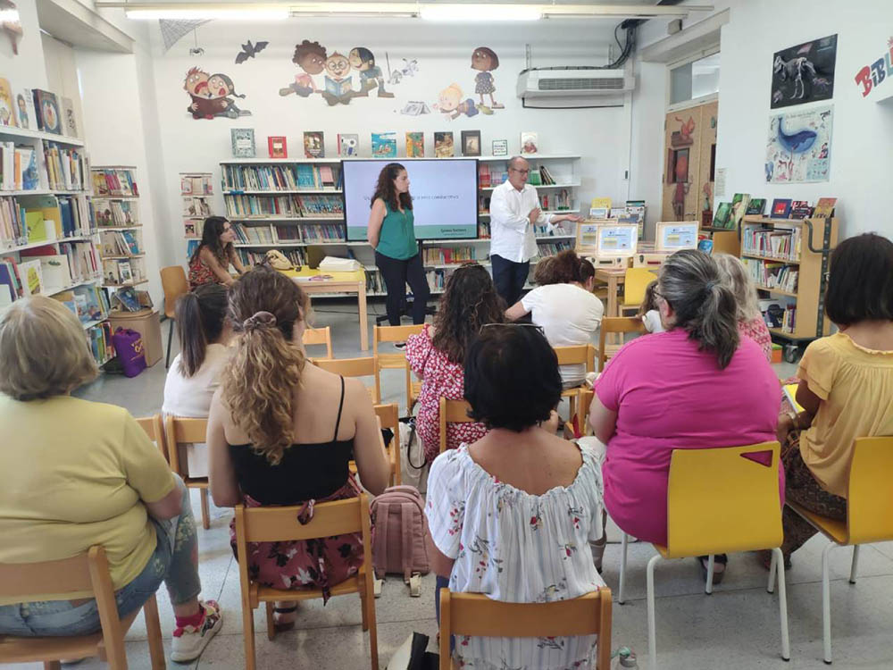 A més, amb la idea de continuar ampliant el projecte, s'ha oferit un taller eminentment pràctic amb Judith Gallardo, de Genios Lectores, per a oferir ferramentes sobre com treballar els contes i llibres que inclouen les maletes a l'aula. Aquest taller, s'ha realitzat a la Biblioteca Municipal en dos grups diferenciats: un per a personal docent d'Infantil i Primària i un altre pensat més per a docents de Secundària.