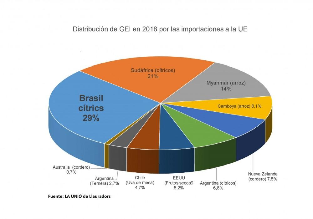 El estudio de LA UNIÓ sirve a modo de ejemplo para ilustrar los problemas contaminantes, aparte de otros, que generan las importaciones procedentes desde lejanos países situados a miles de kilómetros. En la muestra de LA UNIÓ se han estudiado las importaciones de Brasil (cítricos en fresco y zumo), Sudáfrica (cítricos en fresco), Myanmar y Camboya (arroz), Nueva Zelanda (cordero), Argentina (cítricos en fresco y carne de vacuno), EEUU (frutos secos, fundamentalmente almendra), Chile (uva de mesa) y Australia (cordero).