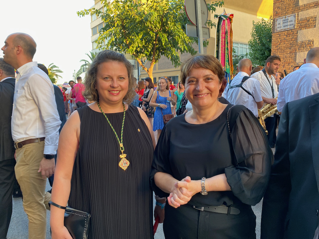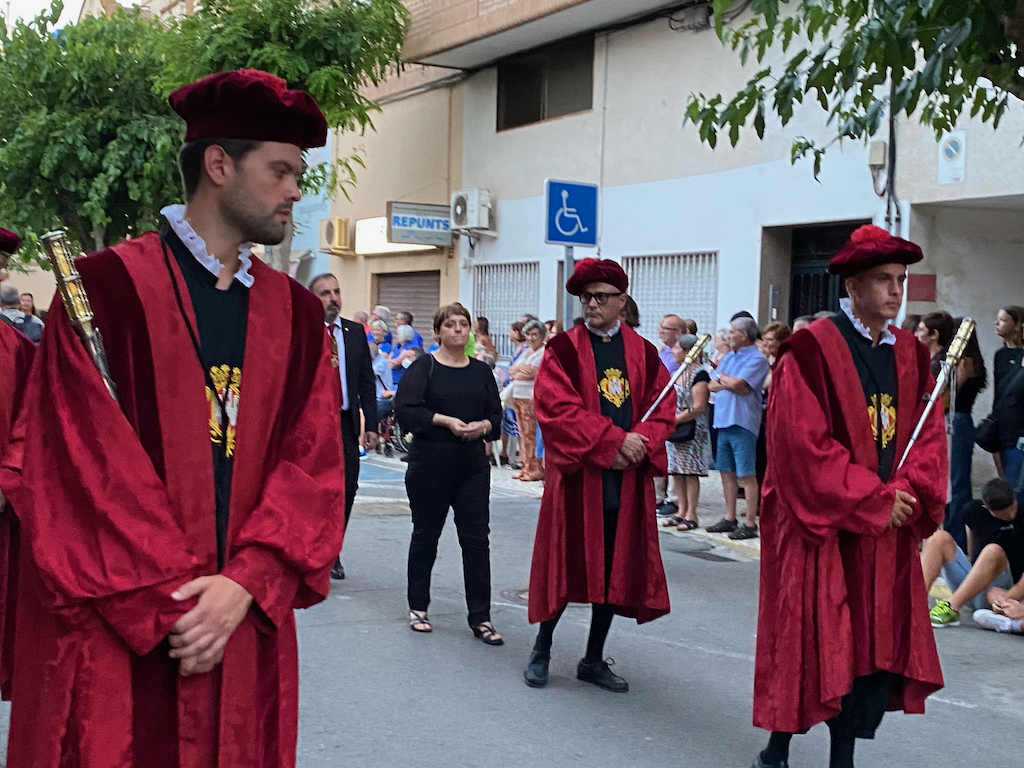 Estaban las reinas de Castelló, Carmen Molina y Gal·la Calvo. A ellos se les sumaron las comisiones de fiestas del Grau, la banda del Grau, las autoridades de Castelló, y también la banda municipal.